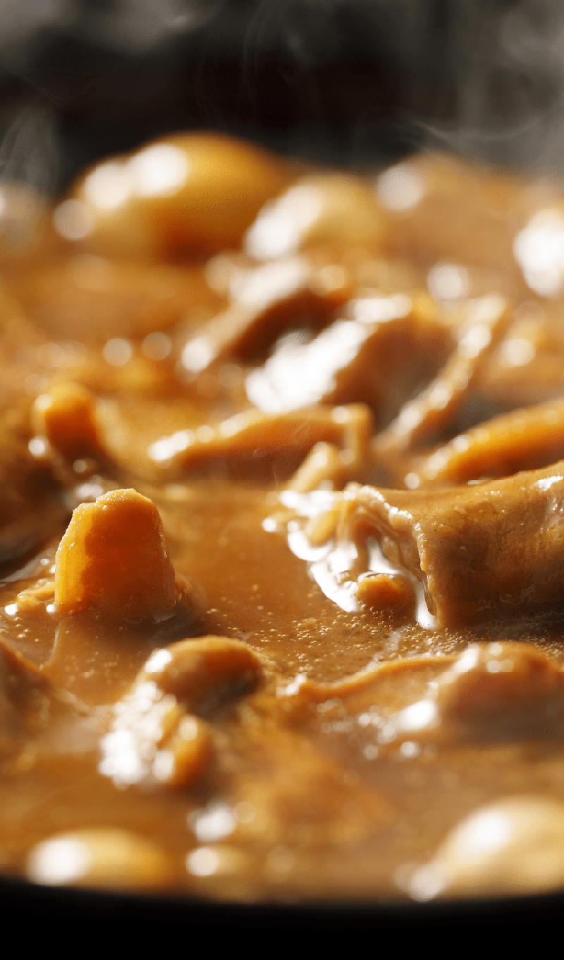 加賀味噌をベースに、にんにく、生姜、唐辛子の香辛野菜の風味と旨味が詰まった特製味噌ダレでじっくり煮込みました。