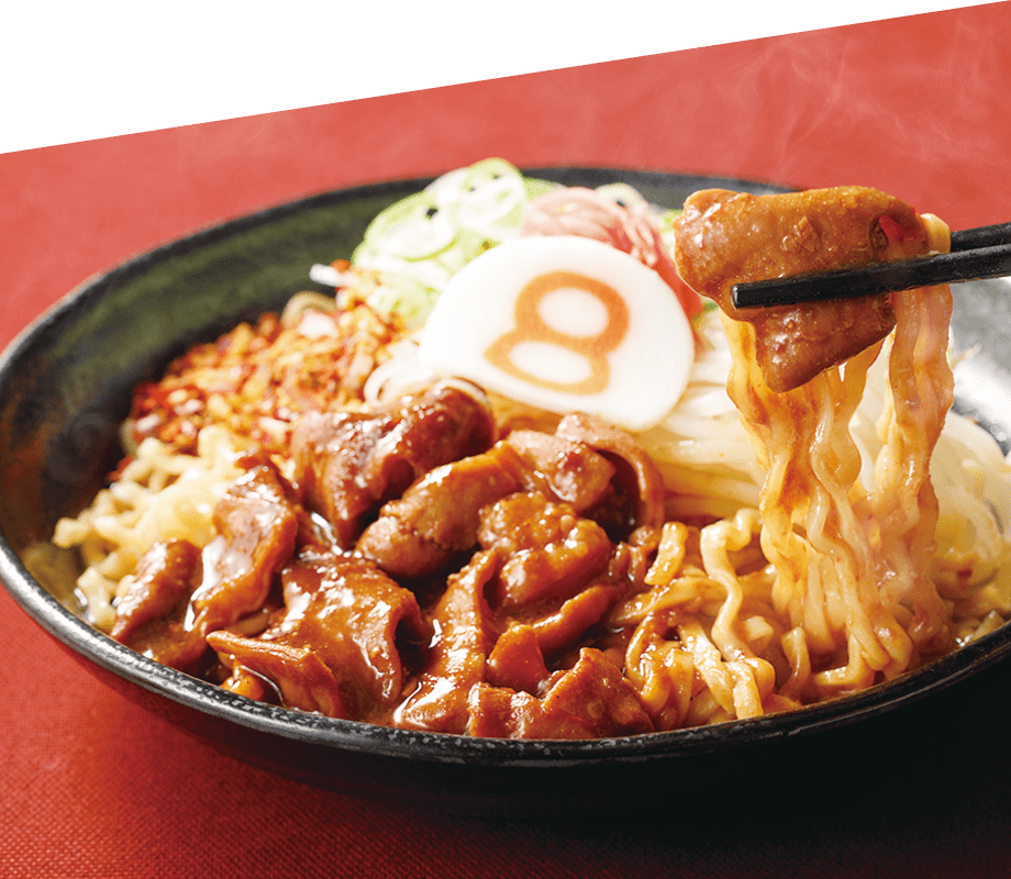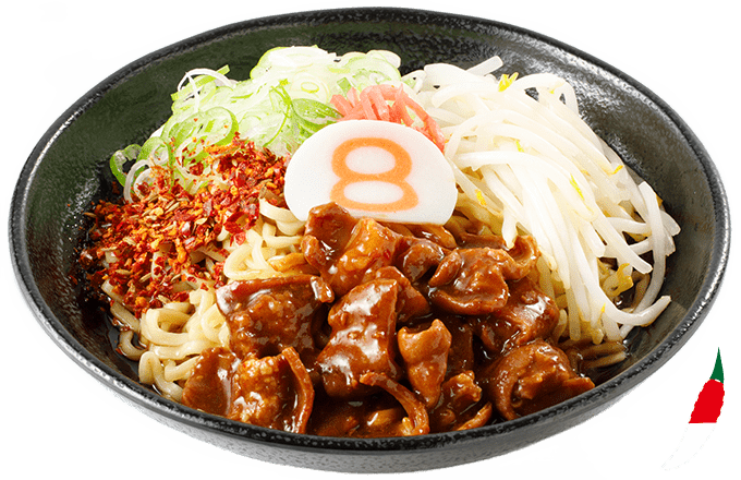 8番のまぜそば「唐麺」をベースに、特製味噌ダレでじっくり煮込んだ「牛もつ煮」をトッピング。牛もつ煮が加わったことで、コクと食感が増し、食べ応えもあります。